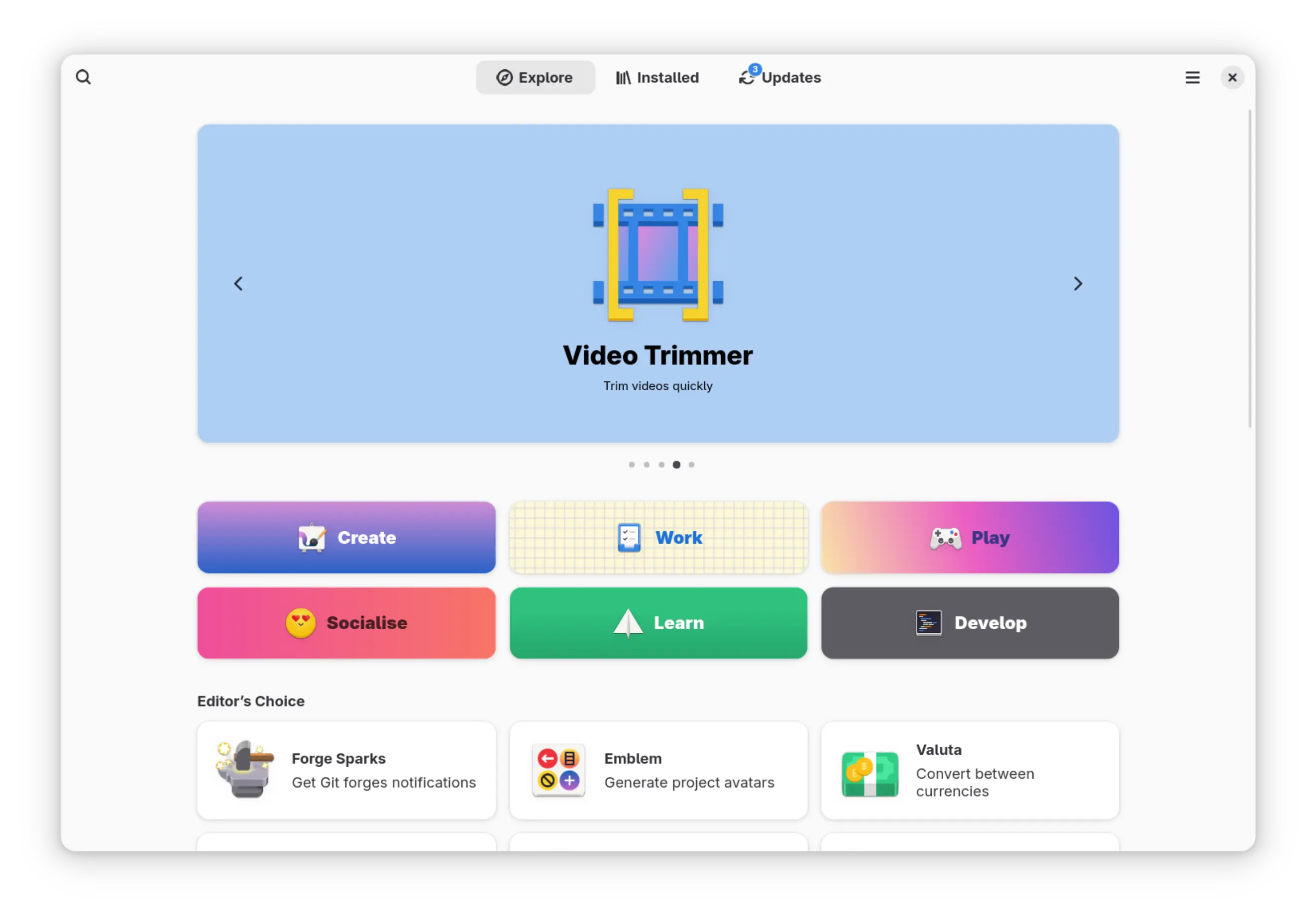 Fedora offers a fantastic collection of apps which cater to every need. Easily install the very best desktop apps with the click of a button from Fedora's repositories, Flathub or anywhere else.