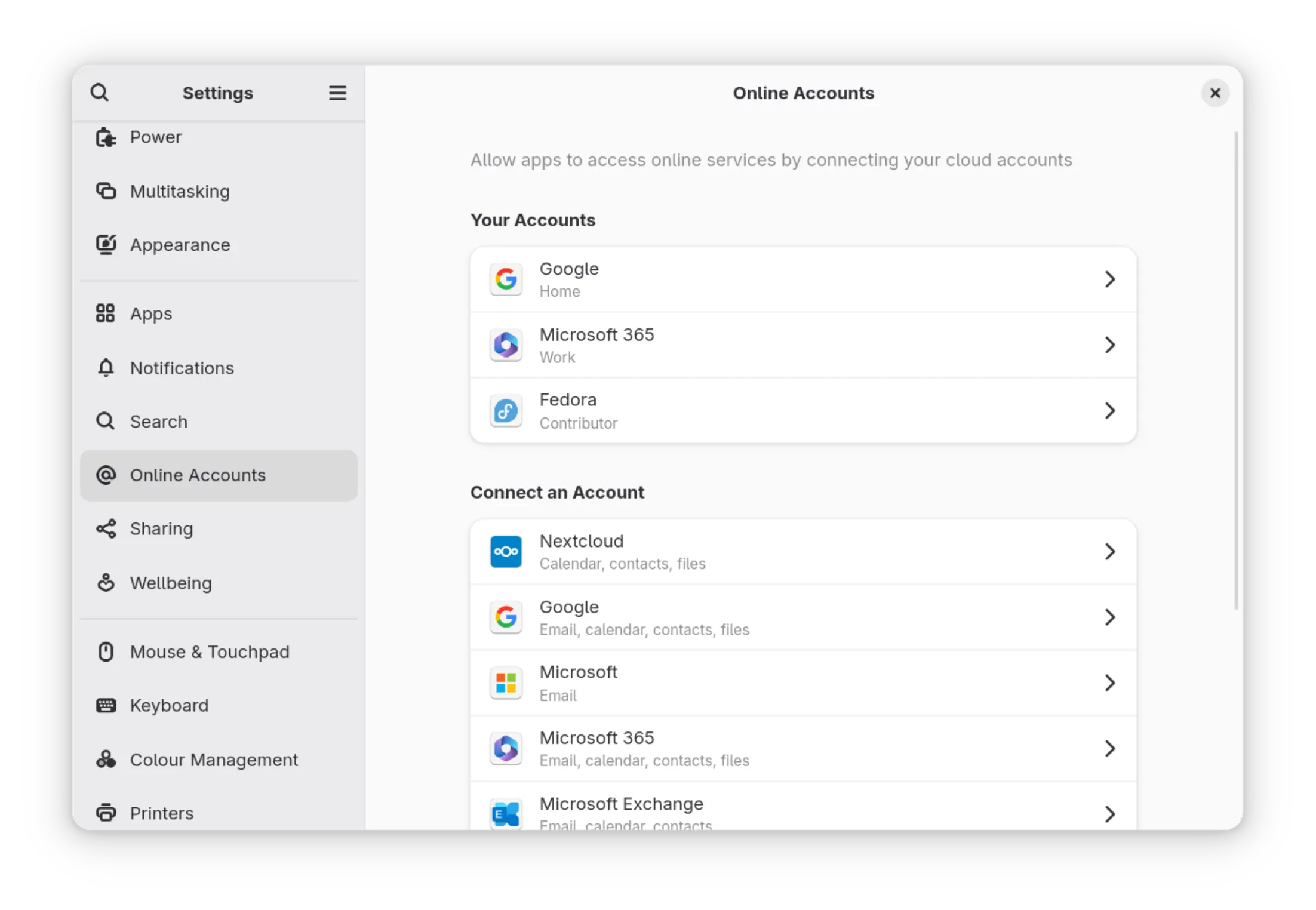 Optionally, bring your online calendar, contacts and data to the desktop with online accounts.